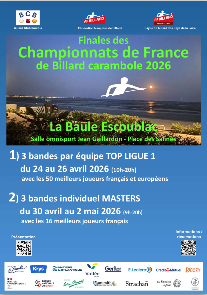 - En individuel, dimanche 22, Vincent Lelièvre et Dominique Janvier sont convoqués à Coulaines pour la finale de Ligue N1, tandis qu'Andréas Stein et Kévin Antoine le sont à La Baule pour la finale de Ligue N2.