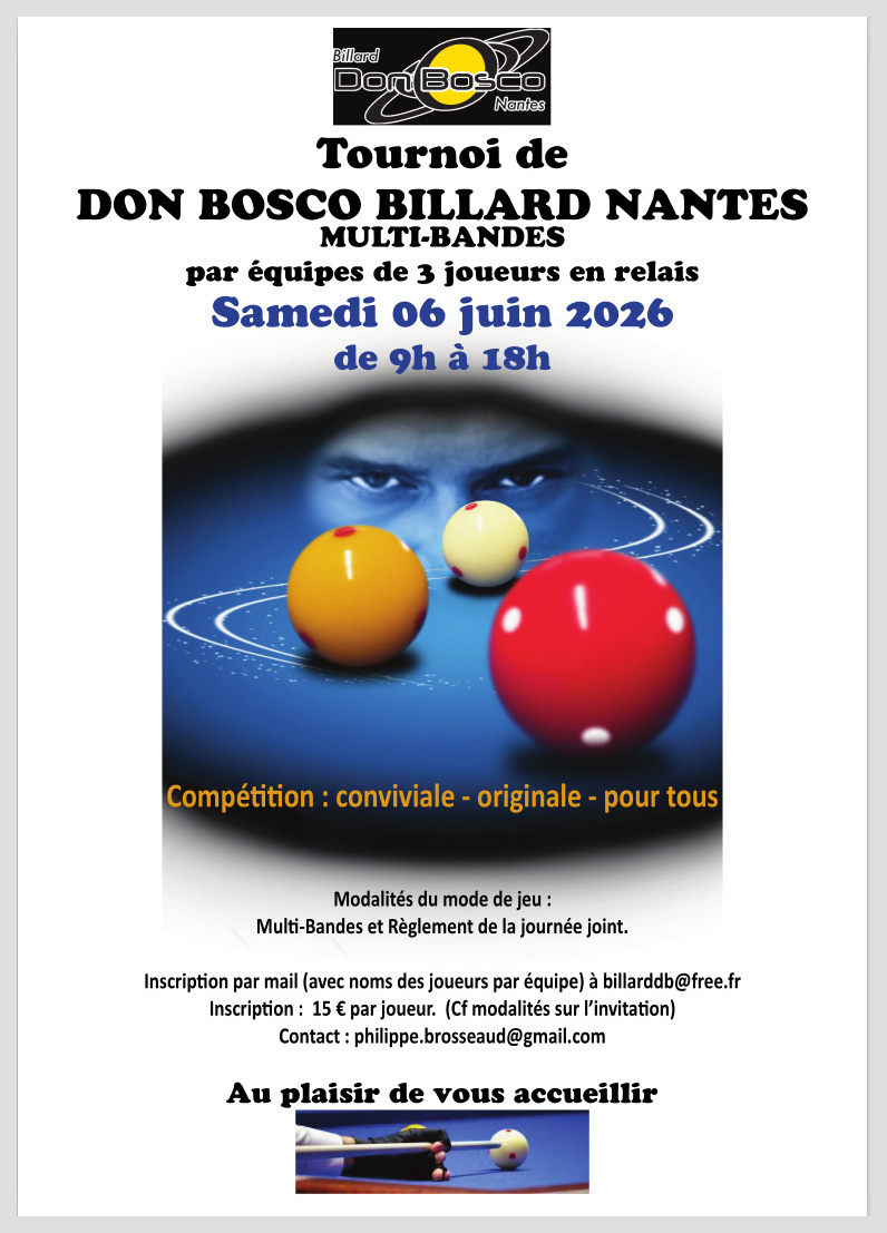 In the mathematical model, the balls are points, with no diameter. The principle "Reflection = Incidence" is applied, taking into account the side spin according to the rule: "one tip of spin = one diamond of deviation in width", "one tip of spin = two diamonds of deviation in length". We assume, which is unrealistic, that the spin applied at the shot remains constant throughout the entire trajectory. We also assume that contact with the rails does not cause any hooping, and does not communicate any additional spin.